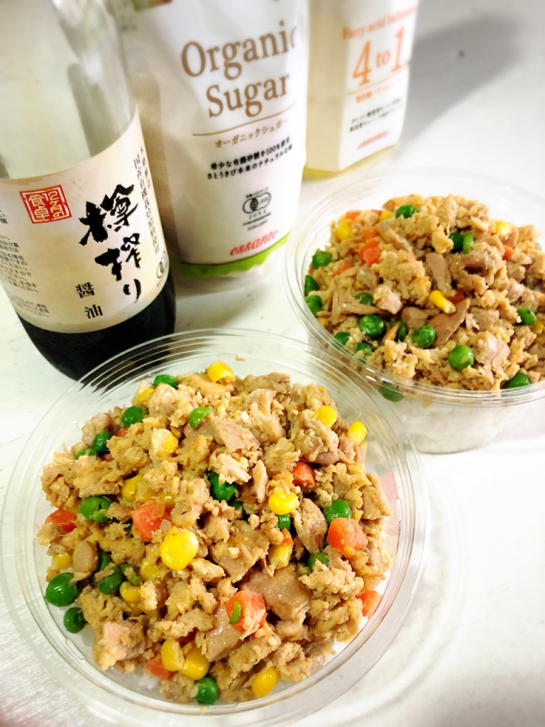 JUGEMテーマ:毎日の簡単1品 ーーーーーーーーーーーーーーーーーー ーーーーーーーーーーーーーーーーーー 今日は〜ツナと卵とミックスベジタブルで丼♪ それでは材料から〜 ツナ缶・・・大1缶 卵・・・2個 ミックスベジタブル・・・大さじ4〜5 エサンテ4to1脂肪酸バランスオイル・・・少々 エサンテオーガニックシュガー・・・大さじ2/3 12ヶ月の食卓樽搾り醤油・・・大さじ1 みりん・・・...