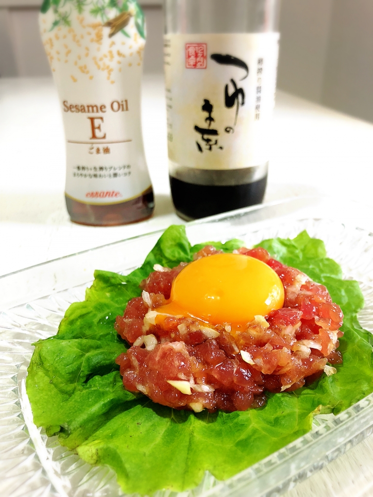 JUGEMテーマ:毎日の簡単1品 今日は〜まぐろ♪ ーーーーーーーーーーーーーーーーーー ーーーーーーーーーーーーーーーーーー それでは材料から〜 4人前 お刺身用まぐろ・・・250g 長ねぎみじん切り・・・10センチ ☆12ヶ月の食卓つゆの素・・・大さじ2〜3 ☆エサンテセサミオイル・・・大さじ1 サンチュ・・・4枚 卵黄・・・4個 以上です! それではLet's cooking! ...