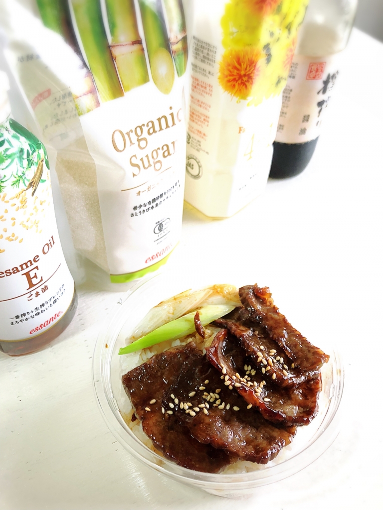 JUGEMテーマ:毎日の簡単1品 今日は牛肉で丼♪ それでは材料から〜 焼き肉用牛肉・・・200g 白ネギ・・・1/2本 ご飯・・・2杯分 白いりごま・・・大さじ1 エサンテ脂肪酸バランスオイル・・・適量 ☆すりおろしにんにく・・・1片 ☆12ヶ月の食卓樽搾り醤油・・・大さじ2と1/2 ☆エサンテオーガニックシュガー大さじ1と1/2 ☆酒・・・大さじ1 ☆エサンテセサミオイル・・・大さじ1 以上です! それではLet's cooking! ...