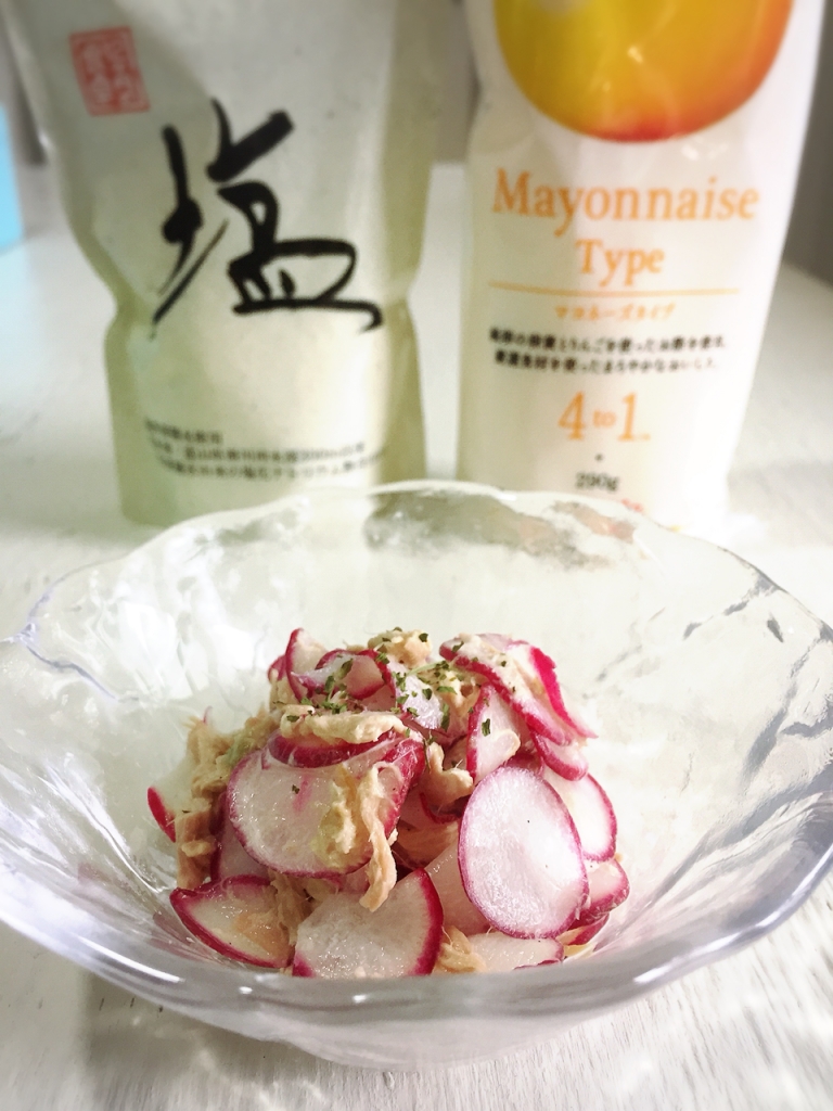 JUGEMテーマ:毎日の簡単1品 ーーーーーーーーーーーーーーーーーー ーーーーーーーーーーーーーーーーーー 今日は〜ラディッシュとツナ♪ それでは材料から〜 ラディッシュ・・・10個 ツナ缶・・・1/2缶 12ヶ月の食卓塩・・・少々 胡椒・・・少々 エサンテ4to1マヨネーズタイプ・・・少々 柚子胡椒・・・少々 以上です! それではLet's cooking! ラディッシュ...