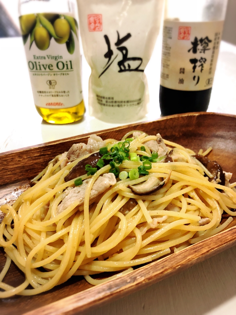 JUGEMテーマ:毎日の簡単1品 ーーーーーーーーーーーーーーーーーー ーーーーーーーーーーーーーーーーーー 今日は〜パスタ♪ それでは材料から〜 エサンテパスタ・・・80〜100g 豚薄切り・・・50g 椎茸・・・3〜4枚 にんにくみじん切り・・・1片 12ヶ月の塩・・・少々 胡椒・・・少々 白ワイン・・・少々 ☆茹で汁・・・50cc ☆12ヶ月の食卓白だし・・・小...