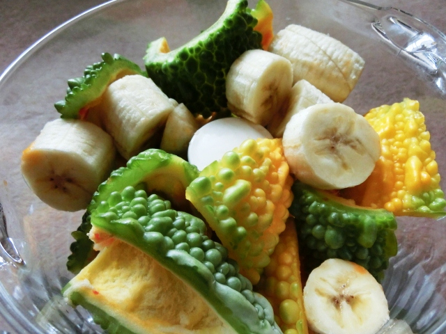 JUGEMテーマ:おうちカフェ 緑のカーテン。。。の為ではなく、 単に収穫したいがための、うちのゴーヤ。 水不足!?すぐ黄色くなってまう。 こーなったら、スムージー始めました!!的にチャレンジ! 適当に、ゴーヤとバナナ。 数十秒でこんなん。 ミルク割り〜。 ハチミツもちょっとねー。 しかし。。。数時間後のデトックスに、効果絶大であった。。。 すむ汁、恐るべし。。。