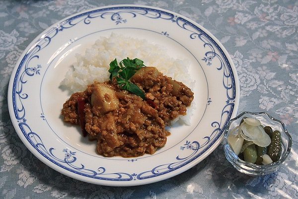 JUGEMテーマ:私の手料理 レーのこだわり、なんかある? 毎日カレー〜♪ そして我が郷土、生産量日本一の食材でつくるレンコンカレー。 クミンシード、シナモンスティック、ローレル、グリーンカルダモンの香りを移した油で玉ねぎをじっくり炒めてから、挽肉、乱切りレンコンも同様に炒める。 そこに、ターメリック、コリアンダー、チリペッパー、クミンパウダーを加え、トロみがついたら塩コショウで味を調え完成。 玉ねぎをきつね色になるまで炒め終え...