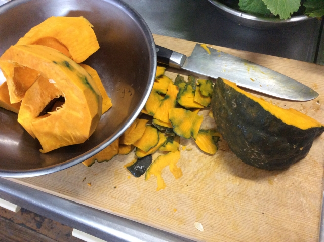 JUGEMテーマ:私の手料理 昨年秋に城山農場で収穫し、毎週一個づつ料理に活躍してくれてきたかぼちゃが今日で最後になりました。肉厚で程よく締まっていて上等のかぼちゃです。最後のかぼちゃは定番の煮物で頂きます。煮汁は醤油、砂糖、味醂、お酒が1:1:1:1。かぼちゃが甘いので砂糖を幾分控えめにしようと思います。かぼちゃ兄弟に敬礼です。ご苦労様でした
