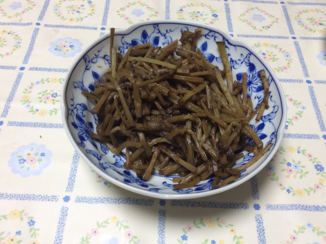 JUGEMテーマ:私の手料理 竹やぶの下草を刈り始めました。竹やぶには雨蛙の傘くらいの小さい蕗が葉を広げています。蕗は春真っ盛りの季節の食材で、毎年5月になると茎が太くなった蕗を摘み、きゃら蕗を作ります。この蕗はまだ小さく茎も細く短いので、ほかの下草と一緒に狩り倒していたのですが、どうもその存在が気になりはじめ、結局この小さい蕗を摘んで調理することにしました。作ったのはやはり「きゃら蕗」。但しいつもは鷹の爪を入れてピリッとした味付けにするのですが、今日は甘党の父親に合わせて「蜂蜜入りきゃら蕗」...