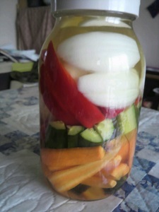 今日の天気は、曇り・雨・・・ 午前中は、の〜んびりとして 午後からは、パッチワークタイム・・・ 今日のパッチワークは、 作り途中の小物も、キルティング途中なのですが、 もうすぐ終わるので、終わったら仕立てに入ります。 次の先染め小物の布選びして、 布印付けしてカットして、縫う順備の段階までしました。 そして、お友達から頼まれているポーチも、 製図が終わったので、これから布選びします。 3日前に漬けたピクルスが、美味しく漬かってます。 ちょっと酸味がありますが、 鷹の爪を入...