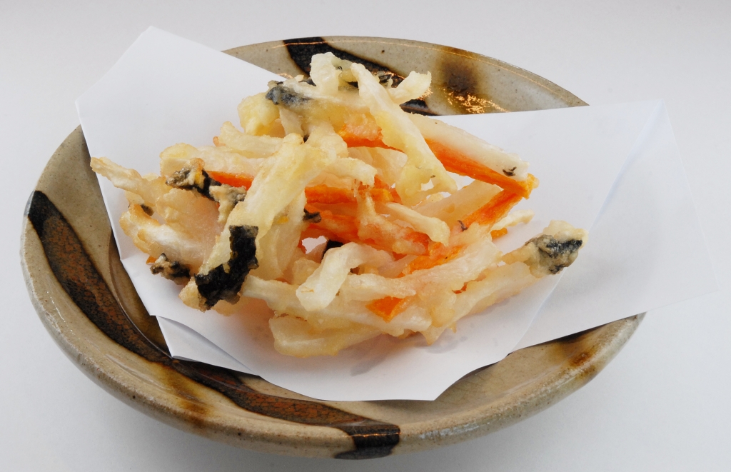 JUGEMテーマ:野菜を食べよう ≪ 糖しぼり大根のかき揚げ ≫ 【材料】 ・糖しぼり大根・・・・・100g ・人参・・・・・・・・・・・・・30g ・のり・・・・・・・・・・・・適量 ・小麦粉・・・・・・・・・・30g ・溶き水・・・・・・・・・・30cc ・油・・・・・・・・・・・・・適量(揚げ物用) 【作り方】 1.糖しぼり大根5mm角、長さ4cmに切ります。 2.人参も5mm角、長さ4cmに切...