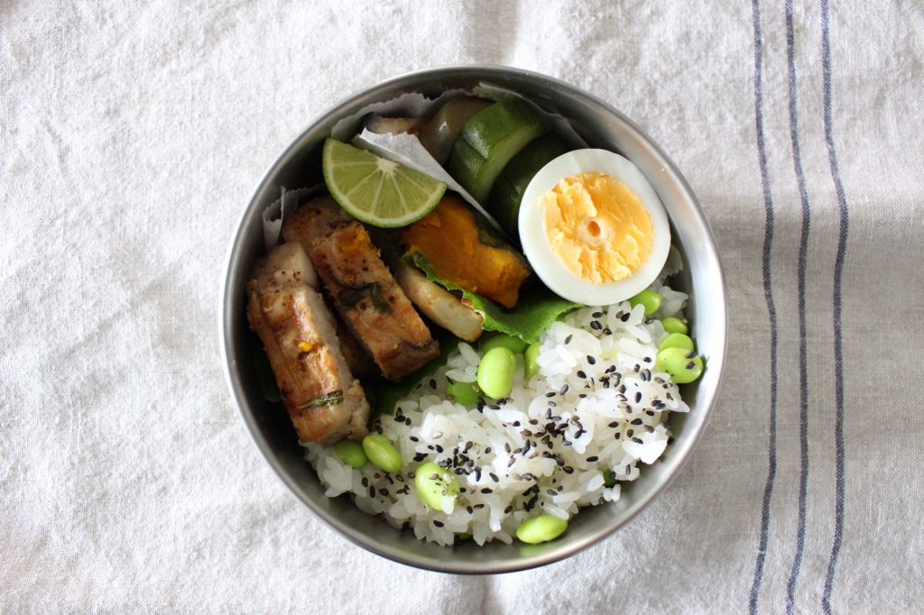 JUGEMテーマ:今日のお弁当 今日のお弁当 枝豆ごはん ポークソテー 林檎のソテー 南瓜の煮物 塩たまご 茄子と胡瓜のぬか漬け 。。。。。。。。。。。。。 久しぶりに鉄のグリルパンを出し豚肉とりんごを焼きました。豚肉に塩コショウしてローズマリーにオリーブオイルで味付けして焼いています。 健康のためにお漬物を食べたり悪玉菌を減らしてくれる効果があるハーブやスパイスを取るようにしています。 わさび にんにく シナモン オレガノ バジル セージ ローズマリー コリアンダーなどです。...
