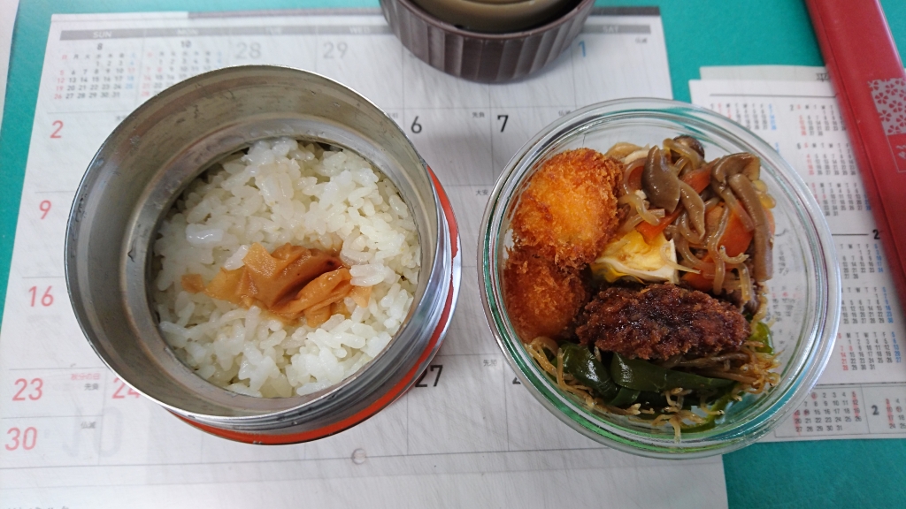 JUGEMテーマ:今日のお弁当 フネでございます。こんばんは! 明日から楽しい三連休です。 皆さま、ご予定は決まりましたでしょうか? フネは、変わり映えしない週末になりそうです。 そして、変わり映えしない今日のお弁当です。 牛肉と糸ごんと野菜のすき焼き風(晩ご飯のこり)、じゃこぴー、ウズラ卵フライ、カツ。 そして、ご飯の上にのっている梅干し! こちらです↓ ↑これ、めっちゃ美味しいです! ...