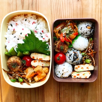 JUGEMテーマ:今日のお弁当 本日のわっぱ弁当&次男幼稚園弁当です。 オット弁当、レタスが盛り盛り大盛り。。 開けたらびっくりするだろーなー。 金曜日、作りおきが底をついてきたので 冷凍しておいた肉団子に頼っています^^ 昨晩は―――――・・・・。 冷凍のご飯がえらい量になってきたので チャーハンをひたすら作って食べたので 記録する絵面ではございませんでした 笑 チャーハンを ひたすら作り 家族でがっつく木曜...