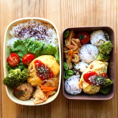 JUGEMテーマ:今日のお弁当 昨日のわっぱ弁当&次男君幼稚園弁当です。 ミートソースとチーズインオムレツ♪ オムレツは電子レンジで簡単に♪ 本日のわっぱ弁当&次男君幼稚園弁当です。 今日はミートソースをタコライスにアレンジ♪ 次男君のはタコライスおむすびにしました♡ 作りおきのミートソースアレンジ弁当フェアでした^^ 次男君はタコライスを おにくごはん♡ と呼んでいて大好物^^ たんと...