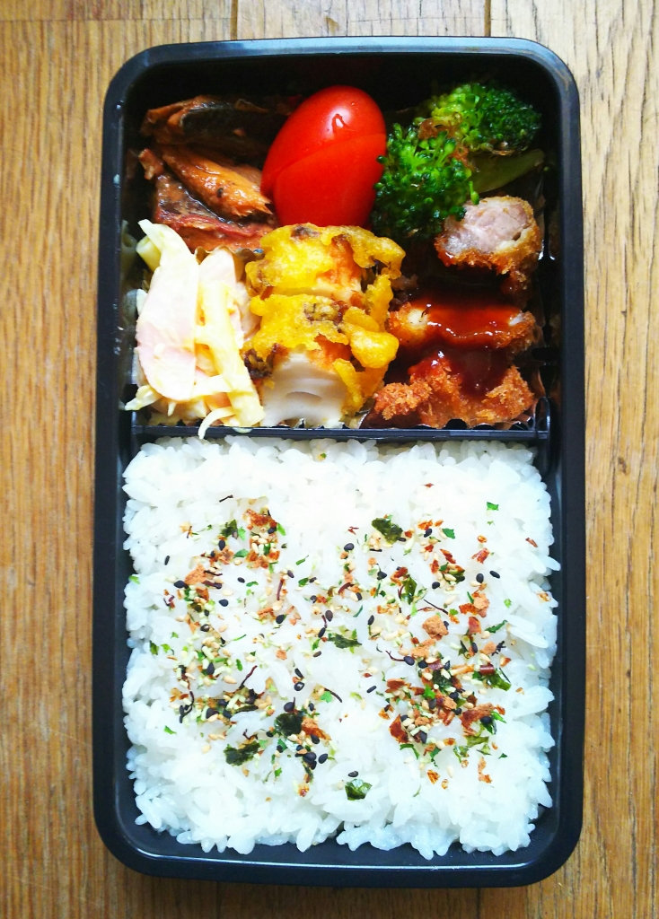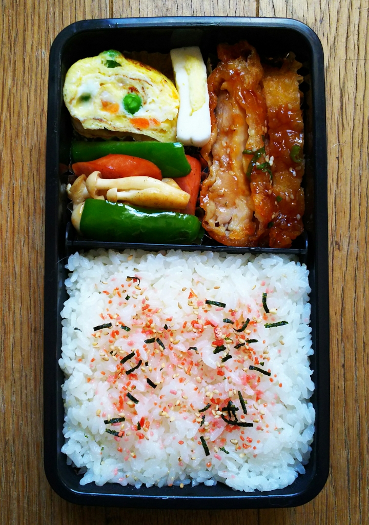 JUGEMテーマ:今日のお弁当 本日のわっぱ弁当です。 茶色いです。 おかんの弁当って感じです^^ 先週金曜日の晩ごはんはこんな感じでした。 【金曜日の晩ごはん】 ・カニカマで天津飯風 ・豚バラスティックとピーマンの炒め物 ・いろいろ野菜とツナのチーズ焼き ・薄揚げとわかめの味噌汁 ・みかん カニカマが余っていたので餡にして天津飯風にしました〜 子供たちも気に入って明日もこれにしてほしいと ^^ していないが。...