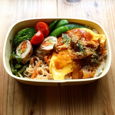 JUGEMテーマ:今日のお弁当 本日のわっぱ弁当です。 電子レンジでオムライスを作ってみました〜 クックパッドID:2979174 を参考にさせていただきました^^ かなりいい感じにいい形にできたよ!! そして昨晩の完熟トマトのハヤシライスソースをかける。 ハヤシソースオムライスの出来上がり♪ ソースが残っているので 今晩もこれにしようかなぁ。チーズも入れて。 という訳で昨日はハヤシライスでした。 【昨日...