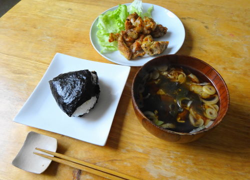 ・ふのりの味噌汁。やけに黒いぜ。 ・レタスとコーンとシーチキンのサラダ ・茄子の鰹節和え ・じゃがいもサラダ ・おくらのポン酢和え ・鰯缶 ・梅干し ・おにぎり JUGEMテーマ:今日の朝ごはん
