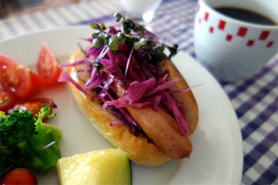 おはようございます。 今日の朝ごはんは、ちゃちゃっと作れるホットドッグ。 歯ごたえのある紫キャベツとチョリソーの相性は◎デス! 因みに、紫キャベツには、茄子やブルーベリーと同じく アントシアニン(ポリフェノールの一種)が多く、強い 抗酸化作用があるのだそうです。 コーヒーは、コロンビア・ラ・マヌエラをセレクト。 それでは、今日も一日でいきましょう! JUGEMテーマ:今日の朝ごはん