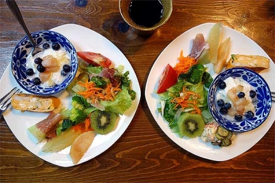 おはようございます。 また、あの蒸し暑さが戻ってきました。 こんな日は、サッパリとしたモノが食べたくなりますね。 と言うワケで、本日はトースト、グリーンサラダと 桃、ブルーベリー、グレープフルーツ、キウイ、メロン っとフルーツ多めの朝ごはん。コーヒーは、三宿ブレンドを セレクト! 朝からしっかり食べて、今日も一日頑張っていきましょっ(^^)/ JUGEMテーマ:今日の朝ごはん