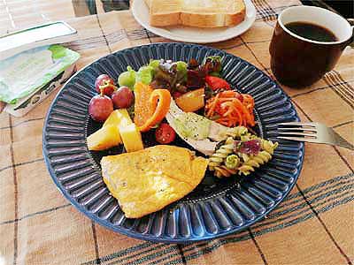 近所の緑道は、色とりどりの花が咲いてパーっと 明るくなってきました。散歩が気持ちのイイ季節ですねー。 カラシちゃんも元気に泳いでます(^^)/ 今朝は、COFFEEYAハウスブレンドと一緒にハムチーズと 林檎のホットサンド、ジェノベーゼパスタサラダ、 スクランブルエッグで朝ごはん。 それでは、良い一日をー! JUGEMテーマ:今日の朝ごはん
