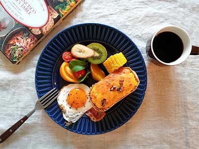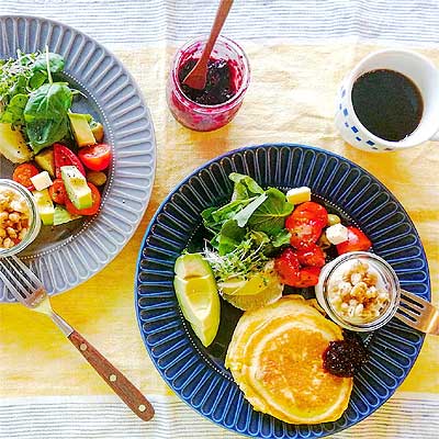 おはようございます。 今朝は、チーズとハムが入ったおからパンケーキに甘酸っぱい ブルーベリージャムをたっぷり付けていただきます🥞 サイドには、赤パプリカとミニトマト、オリーブ、カッテージチーズの レモンマリネを。 パンケーキの甘さとチーズとハムのしょっぱさ、そしてブルーベリーの 甘酸っぱさの組み合わせが👍👍 珈琲は、ちょっと濃いめに淹れた三宿ブレンドを。 良い一日を! ...