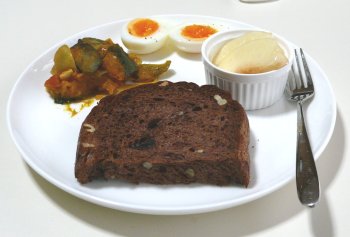 ワンプレートの朝ごはん。23センチのプレート。くるみとココアのパン、ラタトュイユ、茹で卵、桃。他に生ジュースとヨーグルトと市販のコンソメスープがあります。食材とレイアウトをもっと工夫したいところ。ココット型は、プリン用に小さいのを買いましたがワンプレートに使うなら、もう少し径の大きい方がよい。もしくは、ガラス器でも映えそう。また探してきます。。。昨夜は塩豚の茹で豚が美味でした。今日はこれから通院です。道に迷いませんように。JUGEMテーマ:今日の朝ごはん