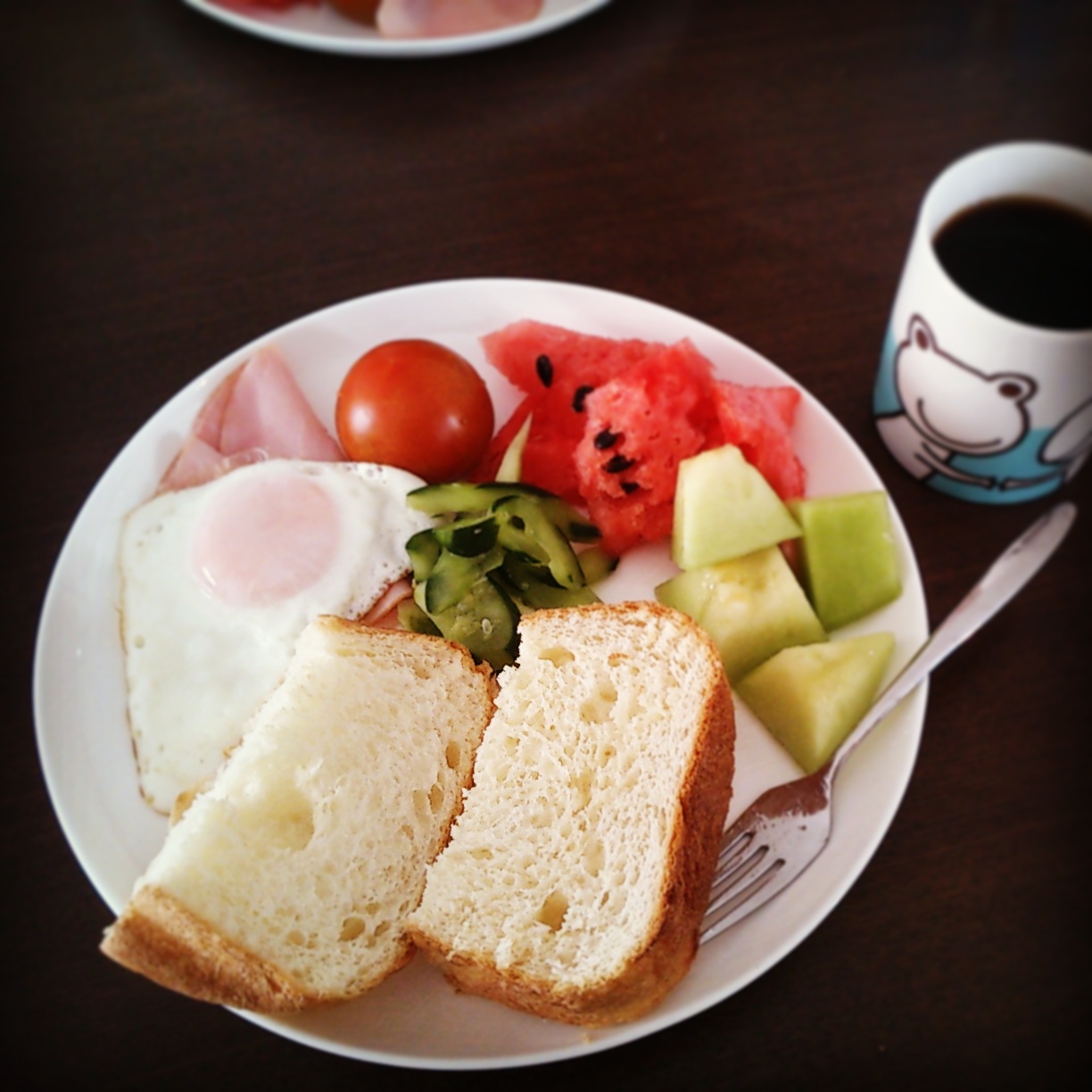 今朝の朝ごはんでした。 昨夜から体調が悪く、起き抜けもなんだか引きずったままで。 でも、だんなさんの今日の仕事が相当ハードになることはわかっていたので、しっかり食べてもらいたくて。 切っただけ〜のせただけ〜の簡単プレートですが、なんだかてんこもりになりました。 台風が過ぎても蒸し暑さはしっかり残っています。 これからいろいろと忙しい日々になるので、身体をちゃんと調えなくては。 JUGEMテーマ:今日の朝ごはん