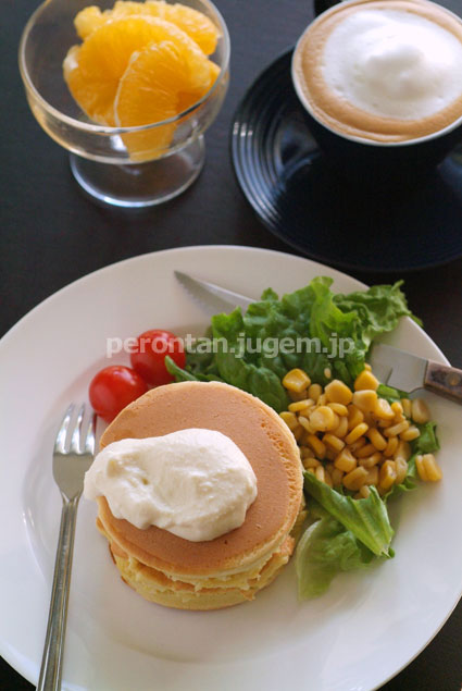 朝ごはん特集 第2章 125回目 200回まで、1/4終わったって事ね… コツコツ、続けて頑張りまっす♪ 今回の「勝手に大賞」はこちら↑ 「たまにはホットケーキで賞」今朝のごはん♪ セルクルで作ったホットケーキ。 ホットケーキミックス使用ですが、甘味少なめ。牛乳の代わりに豆乳を使っています。 ホイップクリームではなくて、クリームチーズをホイップ。 常温にしたクリームチーズを泡立て器で♪ ちょぴり甘いホットケーキにクリームチーズ。 カプチーノ…ちょっと見ただ...
