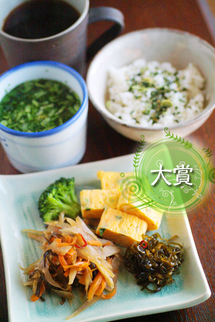 朝ごはん特集 138回目です♪ 今回の「勝手に大賞」は、↓こちら♪ 「たらこおにぎり大好きで賞♪」やっぱり、元気が出るおにぎり^^ほうれん草のおひたし、おにぎりの後ろには…貧血予防の鶏レバーの甘辛煮も。慣れてきましたよ〜キンピラごぼうや、人参のみそ漬け。カプチーノがあるから、休日の朝ごはん。こちらも休日の朝です。いただき物のカステラで(∩゚∀`∩)ワタクシ、朝に甘いものはOKなんです♪長芋おろしです。とろろごはん。山わさびの醤油漬けをたっぷり〜♪焼いて冷凍したパンケーキ。レンチンで温めて。ク...