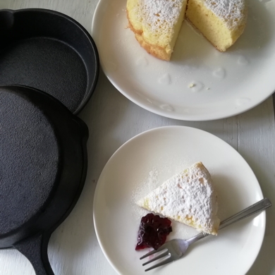 オーブン無し。 スキレットを2台使って焼くスポンジケーキ。 火加減さえ気をつければ オーブンが無くてもふっくらケーキが焼ける。 焼けるってことだけお伝えしたかったので、 デコレーションとかしてないです。 卵2個の普通のスポンジケーキのレシピですよ。 ほんと火加減だけです。 【材料】 15cmスキレット1セット分 卵 2個 砂糖 60g 薄力粉 60g バター 10g 牛乳 10g ...