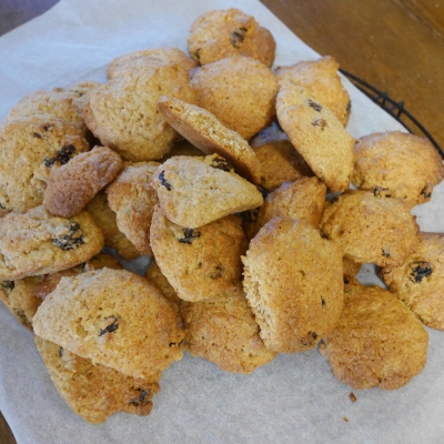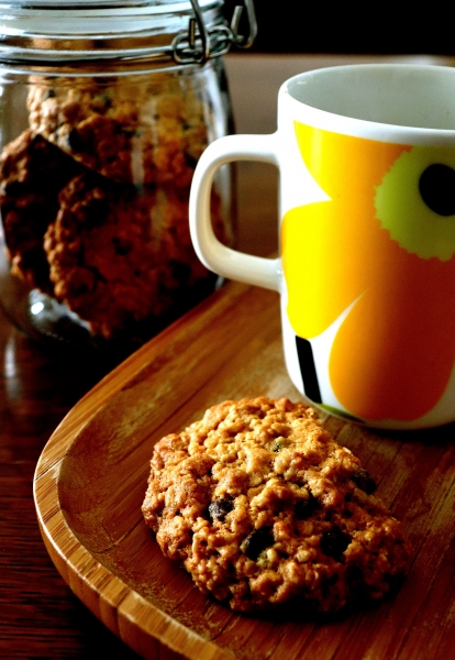 ●パン工房● 〈オートミールチョコチップクッキー♪〉 そろそろオートミールとチョコチップの消費をと思いながら・・あっという間に月日が。 タイミング良くブログ友達のFaithちゃんがクッキーを作られていたので(^^ やっぱりここはそうだよね、クッキーだよねと、作ってみました。 (背中押してくれました・・ありがと♪) 焼色と横広がり・・重曹入りで。 オートミールチョコチップクッキー(天板1枚分・11〜12個分)♪ 薄力粉100g 無塩バター100g きび砂...