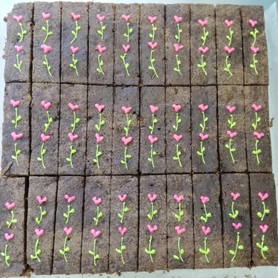 ブラウニー。 チョコ生地に、チョコレートとクルミが入って ほんのりシナモンが隠れている 焼き上がりにラム酒。 高さもしっかりあるので 見かけ以上に食べごたえがある1本です。 アイシングで描いたお花が ゆるみかけの蕾みたいで可愛いね。 ギフトの箱や袋に入れても ひょっこり顔出したお花がアクセントになる。 ショッピングサイトからご購入可能です。 http://cottontulip.shop-pro.jp/?pid=157785045 ...