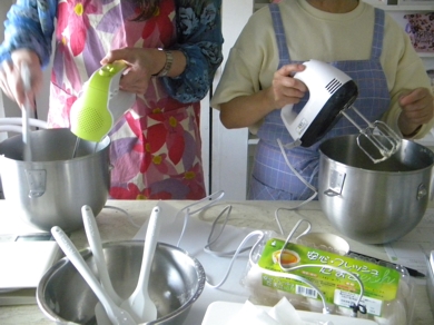 お菓子レッスン。 お友達同志でバターケーキ(パウンドケーキ)レッスン。 まず手始めに オレンジのケーキ。 講師デモはレーズンの入ったケーキ。 サイズを大きくして チョコマーブルケーキ。 マーブル柄の出方が難しい。 ココア生地じゃなくて、チョコレート生地。 洋酒もたっぷり入れて 夢見心地のいい気持になる匂いの中で お喋りも弾...