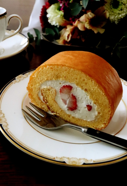 ●パン工房● 〈涙のロールケーキ&お知らせと猫様♪〉 帰るコールがあってから中々帰って来ない・・はやくお酒が飲みたいではないか!といらいらなイヴ(^^ やっと帰宅、顔真っ赤の相棒殿から「はい、これ」と渡された花束。 「ちゃんとクリスマスバージョンにしてもらったから」と背中越しに・・あはは、有難う♪ いつだったかなにかの拍子に「いくつになっても、花束が欲しいのよ!」と、言ったことがあって(^^ たまにはおねだりするもんだね〜いっきにるんるん♪ ...