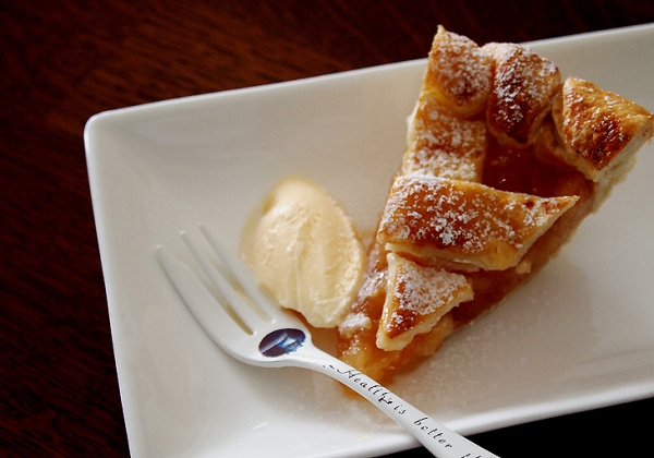 ●パン工房● 〈ちょっとブレイク・・簡単アップルパイ&仕込み中♪〉 常備菜を作っている間の休憩。 暮れに大きな林檎を頂いて、その林檎を久しぶりにアップルパイに。 冷凍パイシート活用、簡単、アップルパイ。 パイ皿は18センチ、冷凍パイシート4枚、林檎3個、レモン小さめ1個使用。 シナモンが苦手な相棒殿を意識しすぎて、少なめ、で、ふぬけな味にならないようレモン汁多め。 これがいけなかった!不評も不評! すっぱすぎて食べれないと・・(苦笑) すっ...