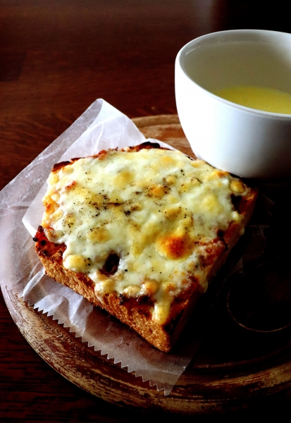 ●パン工房● 〈ストックパンのおうち食パンと・・今日のランチ♪〉 おうち型の可愛らしい食パン、カットして冷凍庫ストック。 すぐ食べないパンは、ラップに包んでジップロックに入れて保存、これが1番♪ 自然解凍後、縦横に切れ目を入れて、夕飯の残りのミートソースを薄く乗せて溶けるチーズをわっさ♪ ミートソースチーズトースト・・飽きないぃ、毎日でもオッケー。 おうち食パンのレシピはこちら→☆ スープはレンチンとうもろこしを削ぎ落とし、玉ねぎとバタ...