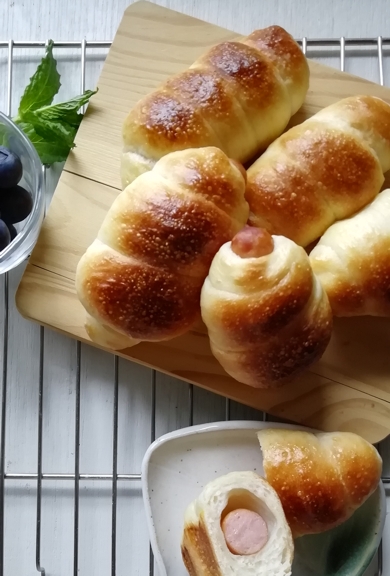 https://youtu.be/_PlR4HyhbaY 【材料 6個分】 ・強力粉 100g ・塩 1g ・インスタントドライイースト 1.5g ・牛乳 35g ・水 35g ・ウィンナー 6本 ヘラで混ぜ、まとまったら手でこねる 2分くらいこねればオッケー。 冷蔵庫で、 夜寝てる間に勝手に発酵してね、 朝、焼くからゆっくり発酵していてね、 ゆっくり低温長時間発酵した生地を 翌日 6等分して ころころ転がしてひも状に伸...