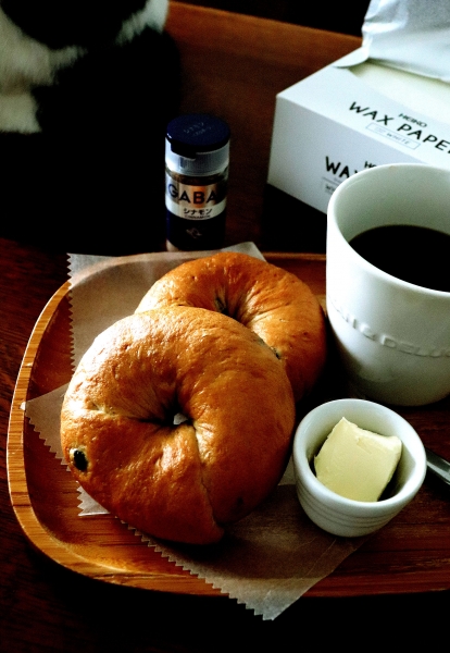 ●パン工房● 〈スパイスを使って世界の朝ごはん・・シナモンとカランツのベーグル♪〉 スパイスアンバサダー・・テーマはスパイスを使って世界の朝ごはんを作ろう!〈主食編〉。 ベーグルの起源は、17世紀に東ヨーロッパのユダヤ人コミニュティーで食べられていたとのこと(^^ その後、移民によりアメリカ大陸に渡り、ニューヨークでいっきに広まったそう。 ベーグルはそうですよね、ニューヨークのイメージ強しですよね(^^ 相棒殿もベーグルはニューヨークで食べたものが1番...