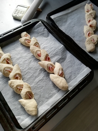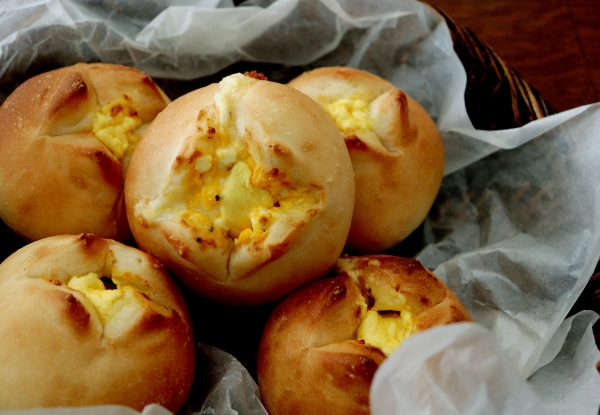 ●パン工房● 〈エッグチーズパン♪〉 年末、チーズ専門店で購入のチーズを消費せねばと、小さくカットしゆで玉子と混ぜ込み、 発酵バター香る生地のフィリングに・・1月限定のちょっと贅沢なパンになりました(^^ おすそ分けパンなので、あら熱を取りパン袋に入れて♪ 喜んでくれると良いな♪ エッグチーズパン(5個分)♪ 強力粉130g インスタントドライイースト1.5g 砂糖8g 塩1.5g 水91g バター12g フィリング/ゆで玉子2個、ソフトタイプのナチュ...