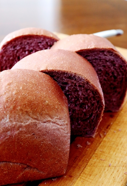 ●パン工房● 〈コンデンスミルク少し・・紫芋のワンローフ&にゃ♪〉 ハッピーハロウィン♪ ハロウィンをちょっぴり意識して、紫芋パウダーを入れていつものワンローフ。 コンデンスミルクもほんの少し。 甘い香りのする紫芋のパン、さつまいもやかぼちゃのペーストや、蜂蜜にメイプルシロップでも(^^ 厚切りでトースト!もちろん、バターもたっぷりで。 紫芋のワンローフ(ミニ食パン型1台分)♪ 強力粉160g 紫芋パウダー20g インスタントドライイースト2g...