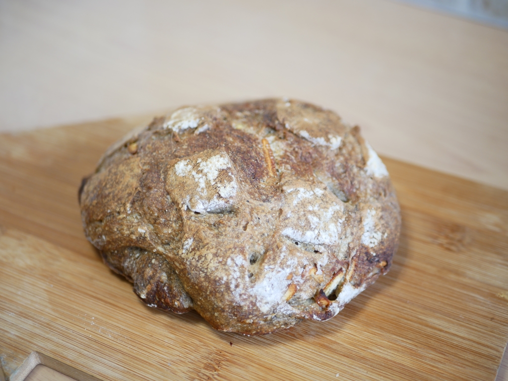 ●パン工房● 〈オーバーナイト法でカンパーニュ&かっちゃん♪〉 久し振りに時間と余力があったので、オーバーナイト法で生地を仕込んで。 9時30分頃に仕込んで、タッパーに入れて冷蔵庫でひと晩一次発酵。 フランスパン粉170g、全粒粉20g、ライ麦10g、インスタントドライイースト0.5g。 モルトエキス少量をぬるま湯と混ぜて。 モルトエキスは少量でも焼色が綺麗に仕上がります、少量タイプがあると良いなといつも(^^ まだまだ発展途上国、レシピはなしです(すみません^^...