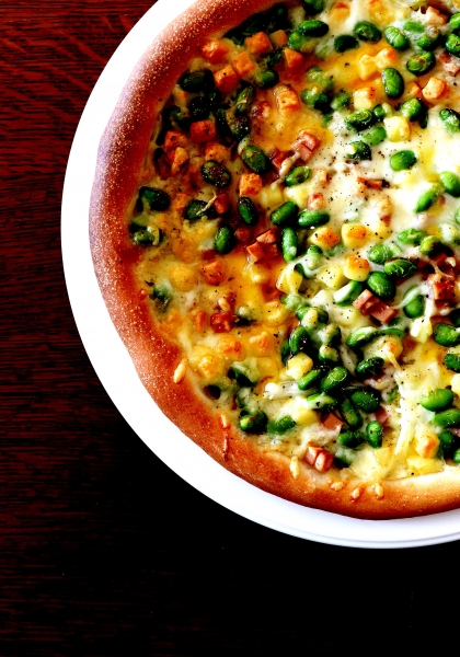 ●パン工房● 〈野性味たっぷりの枝豆で・・休日ピザ♪〉 昨日仕事帰りの相棒殿から「農家の方から枝豆頂戴したよ♪♪」と黄色い声♪ きゃほ、小粒だけどとれたてぇ〜畑の宝石や〜早速、ピザの具材として有り難くいただきます。 ピザ生地(天板1枚分・大人2人分)♪ 強力粉100g 薄力粉30g インスタントドライイースト1g 砂糖5g 塩1.5g 水75~77gほど オリーブオイル10g ボウルに粉、イースト、砂糖を入れ、混ぜます。 塩を加え混ぜ、水を入れ、ひとまとめ...