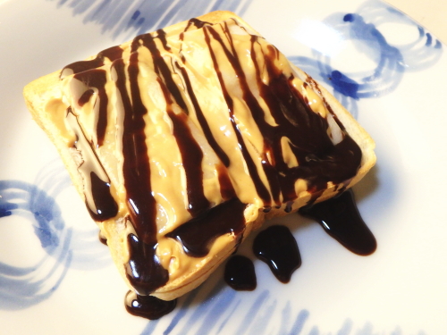 JUGEMテーマ:手作りパン 写真はお餅トースト。 しゃぶしゃぶもちという薄切りのおもちを 乗せて焼いて作ります。 これーまさかピーナッツバターと ここまで合うと思いませんでしたよ。 ぜひ作ってね! <作り方> 食パンにしゃぶしゃぶもちを並べ、5分トーストしてください。 焼きあがったお餅トーストに、ピーナッツバターを塗ったら、上からチョコレートソースをかけて出来上がり。 以下がしゃぶしゃぶもち。ハローズで売って...