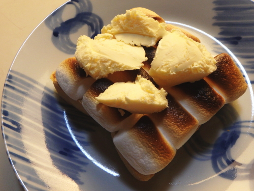 JUGEMテーマ:手作りパン 今回のトーストは、 マシュマロとアイス。 どんな味に仕上がるか、 ドキドキで作りました。 食パンにピーナッツホイップを塗り付けたら、上に、マシュマロを配置してトーストしてください。 トースト時間は5分程がいいでしょう。 マシュマロがこんがり焼けたら、上にアイスを盛り付けて出来上がり。 マシュマロトーストうんまぁー。 でした。 まだまだ沢山のマシュマロトーストを作ったYO。^^ ...