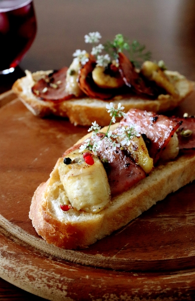 ●パン工房● 〈かりかりシャウベーコロンとバナナのタルティーヌ♪〉 ベーコンとバナナとピーナッツバターのサンドイッチ、エルビスが愛したサンドイッチを、 ニッポンハム様のモニター商品の”シャウべーコロン”で、タルティーヌにしてみました♪ うまうま♪ ニッポンハム・シャウべーコロン♪ シャウベーコロンとバナナのタルティーヌ(1人分)♪ 薄切りパン(薄切りパン)2枚 ピーナッツバター8g ニッポンハム・シャウベーコ...