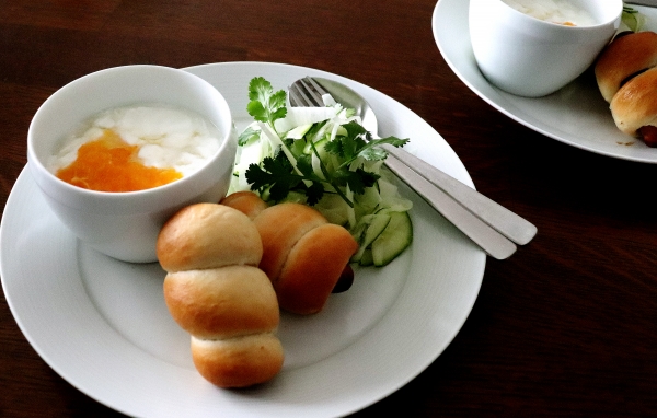●パン工房● 〈休日ブランチ&愛しきおちびさん・・にゃ♪〉 昨日仕事休みの相棒殿、嬉しい3連休も何をするでもなく身体休めな休日となりそう(^^ 海外ドラマ見てちょっと夜ふかし、彼には新鮮なのかも(^^ そして朝寝坊。 休日ブランチ・・ベーグルソーセージに、ズッキーニとパクチーのサラダ。 みかんジャムとはちみついっぱいの自家製ヨーグルト♪ パクチーもね、いつもの道の駅で苗を見つけ、即買い〜〜夢の久々家庭菜園なんです〜♪♪ 最後の2つ...