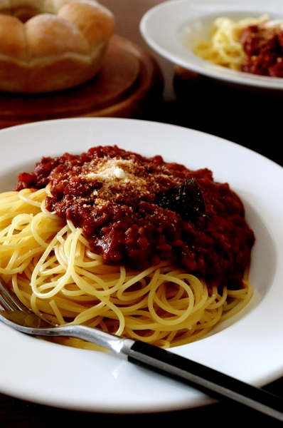 ●パン工房● 〈休日ランチ&今年も・・♪〉 先日作ったちぎりパン、冷凍庫から出して自然解凍。 作り置きの野菜いっぱいミートソース。 野菜いっぱいが美味しい(^^そして、ローリエは欠かせない・・温めて簡単ランチ♪ 相棒殿は粉チーズいっぱいが好み、私は鷹の爪を入れて辛くしたオリーブオイルいっぱいが好き♪ 15センチエンゼル型のちぎりパン。 これで完売・・また作ろ♪ 桜。 車の中からだったり、スーパーへ食品を買いに行く道...