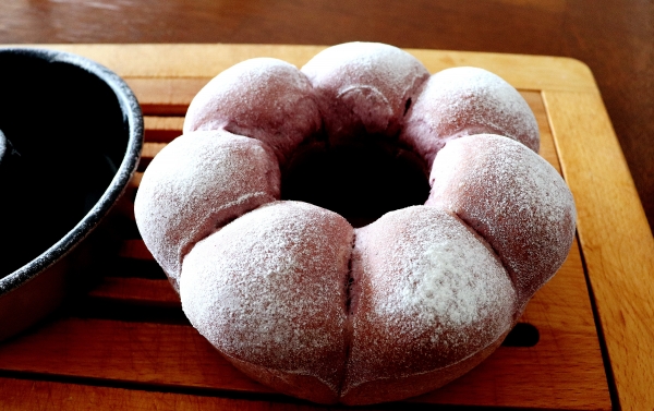 ●パン工房● 〈美味しいごまペーストと紫芋のちぎりパン&にゃ♪〉 大切な友人から、美味しい頂き物が届きました(^^嬉しい〜有難う(^^ 黒ごまペーストに、くるみスプレッドと、アプルシナモンジャム♪ 今日のチョイスは黒ごまペースト、ペーストに合わせ和な紫芋のちぎりパン。 ほんのりはちみつの香り♪♪ 紫芋とはちみつのちぎりパン(15センチエンゼル型1台分)♪ 強力粉(春よ恋)120g 紫芋パウダー10g インスタントドライイースト2g はちみつ6g 塩...