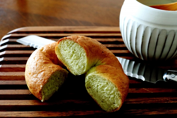 ●パン工房● 〈そら豆のベーグル&寅吉くん・・にゃ♪〉 少し前にそら豆ごはんを作って、微妙な量残ってしまったそら豆ちゃん♪ 冷凍庫から救済レンチン解凍(^^ 柔らかくなったそら豆を莢から出して・・捏ねてる間そら豆の香りがいっぱい♪♪ そら豆のベーグル(小さめ3個分)♪ 強力粉100g インスタンtドライイースト1g 砂糖3g 塩1.5g 茹でたそら豆50g 水45~47g(そら豆の水分量で変わります) 強力粉とイースト、砂糖をボールに入れ、混ぜます。 ...