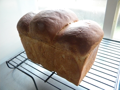 ●パン工房● 〈3度目の正直?1斤角食パン♪〉 ここ数日、捏ね機任せパンのキメが粗く、過発酵気味だったので、発酵時間を短くセットし3度目のトライ。 カメラの不調で焼き上がりの写真を撮れなかったので、1日経過のパンの写真になります(^^ あまり腰折れもせず、これは期待大かしらん?!ドキドキしながらカット・・断面を確認(^^ 随分改善した気がするけど、やっぱりちょっと粗い。 さすがに夫婦2人の食卓に、1日おきとはいえ1斤角食パンの消費は大変。 これ...