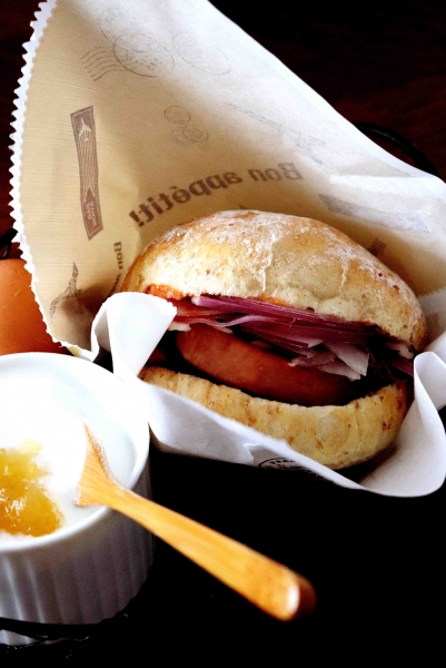 ●パン工房● 〈グラハム粉入りバンズ・・簡単ハンバーガーランチ♪〉 グラハム粉大袋を買ったので、どんどん入れて作ろう〜身体にも良いしね♪ 先日はベーグルだったので、今回はバンズにしました。 具材がハンバーグだとボリュームのあるバンズでも負けないけど、 今回はスパムとレッドオニオン、控えめ具材、控えめ生地量・・手抜きバンザイ(笑) グラハム粉入りバンズ(一般的なバンズ型・3個分)♪ 強力粉120g グラハム粉20g インスタントドライイースト1.5g...
