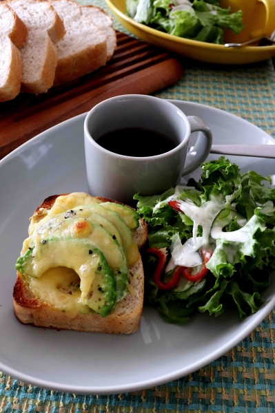 ●パン工房● 〈休日ブランチ・・♪〉 昨日作った、ライ麦と塩麹のワンローフで、休日ブランチ♪ アボカドが食べ頃だったので、薄くスライスして溶けるチーズを乗せて、チーズトーストに♪ 新たまねぎ、ピーマン、レタス、胡瓜のグリーンサラダと(^^ 写ってないけど、チーズとナッツの盛り合わせ、珈琲と。 ワイン我慢が、少々辛いブランチでした(^^ 塩麹を入れると翌日までしっとり♪ 相棒殿は3枚食べてくれて(半ば強制?^^)、2枚はバターと蜂蜜たっぷりトース...