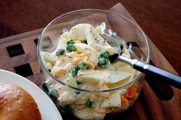 ●パン工房● 〈かんたん&おいしい朝ごはん・・玉子とえんどう豆のサラダとベーグルと♪〉 今日は嬉しいハウス様のモニター、スパイスを使って朝ごはん♪ GABANシナモンシュガー〈パウダー〉・ハウスつぶ入マスタード・ハウスしそ梅に、セロリ塩。 今回は、ハウスつぶ入マスタードをチョイス♪ 大好きなゆで玉子と、旬を迎えたえんどう豆、新玉ねぎのボリュームサラダを作りました♪ ゆで玉子とえんどう豆のサラダ(およそ2人分)♪ 玉子...